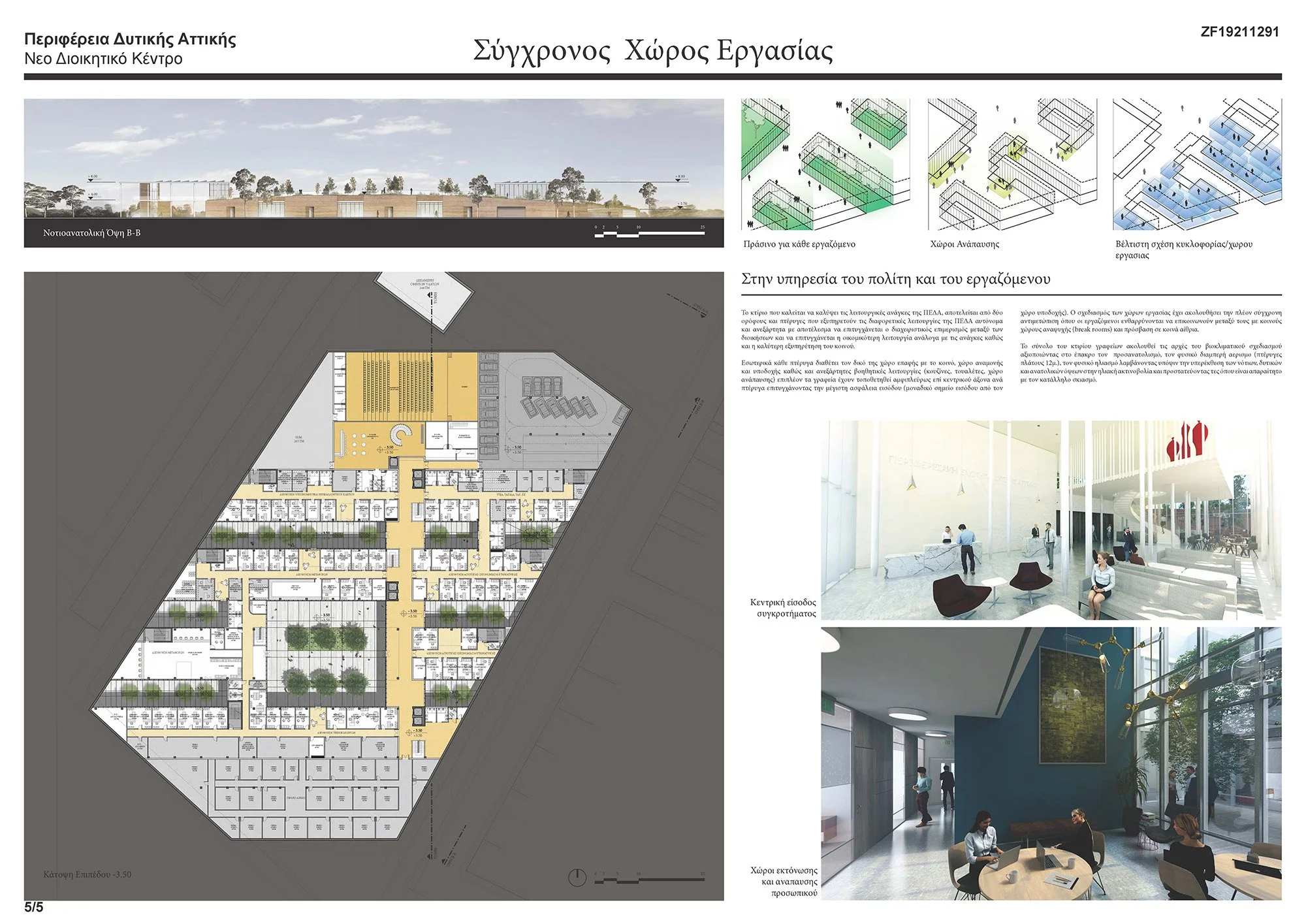 When the Region of Western Attica was looking to create a new administrative building for its services, they launched a competition aiming to get a building that utilizes a very large site in the most efficient way.